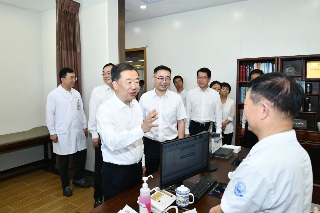會前,與會領導現場參觀了市中醫院門診大廳、檢驗科流水線、名醫堂、影像中心、淡安廣場、產科病房等。