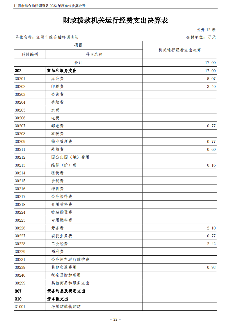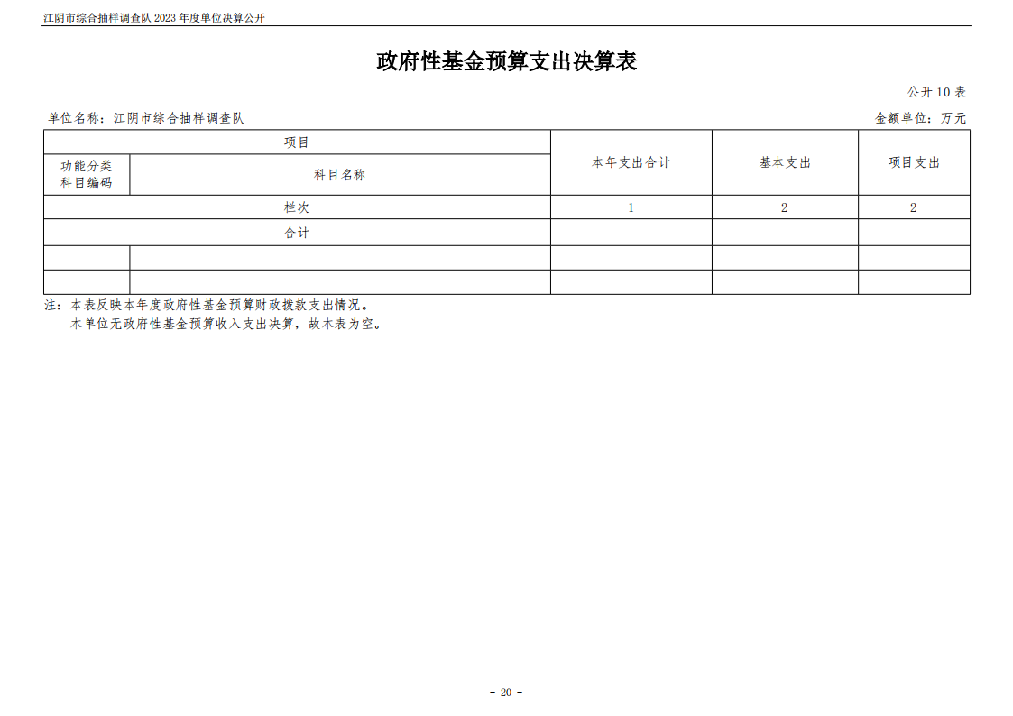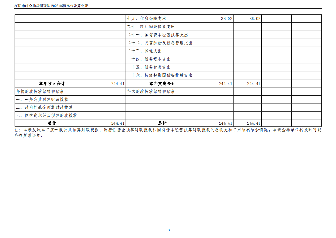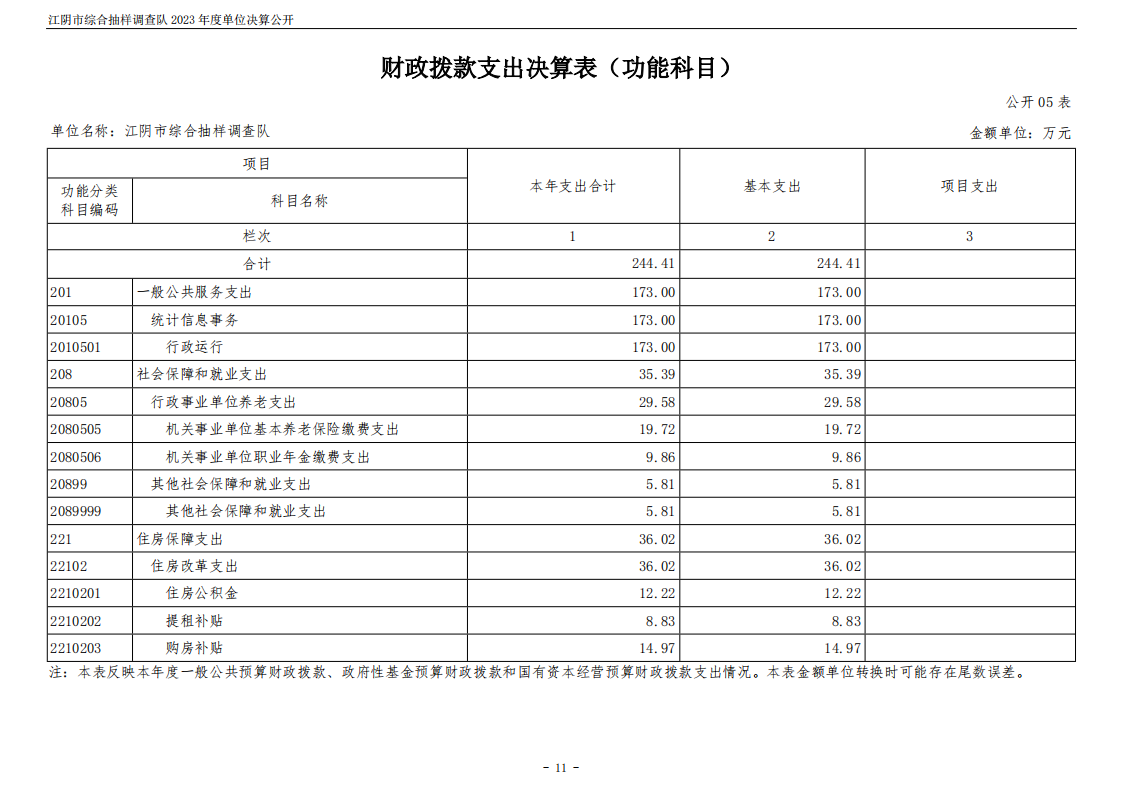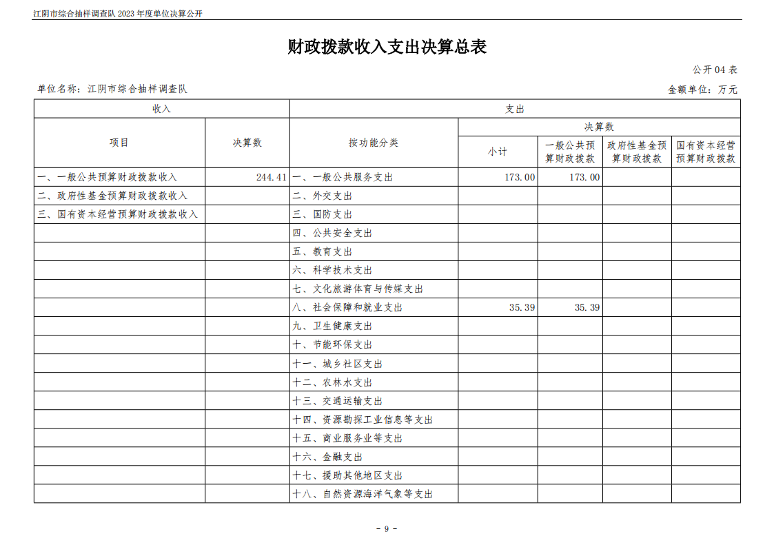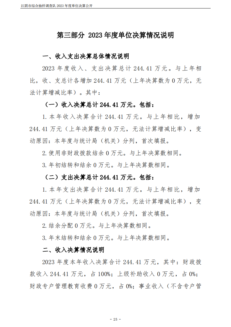 江陰市綜合抽樣調查隊2023年度單位決算公開 |