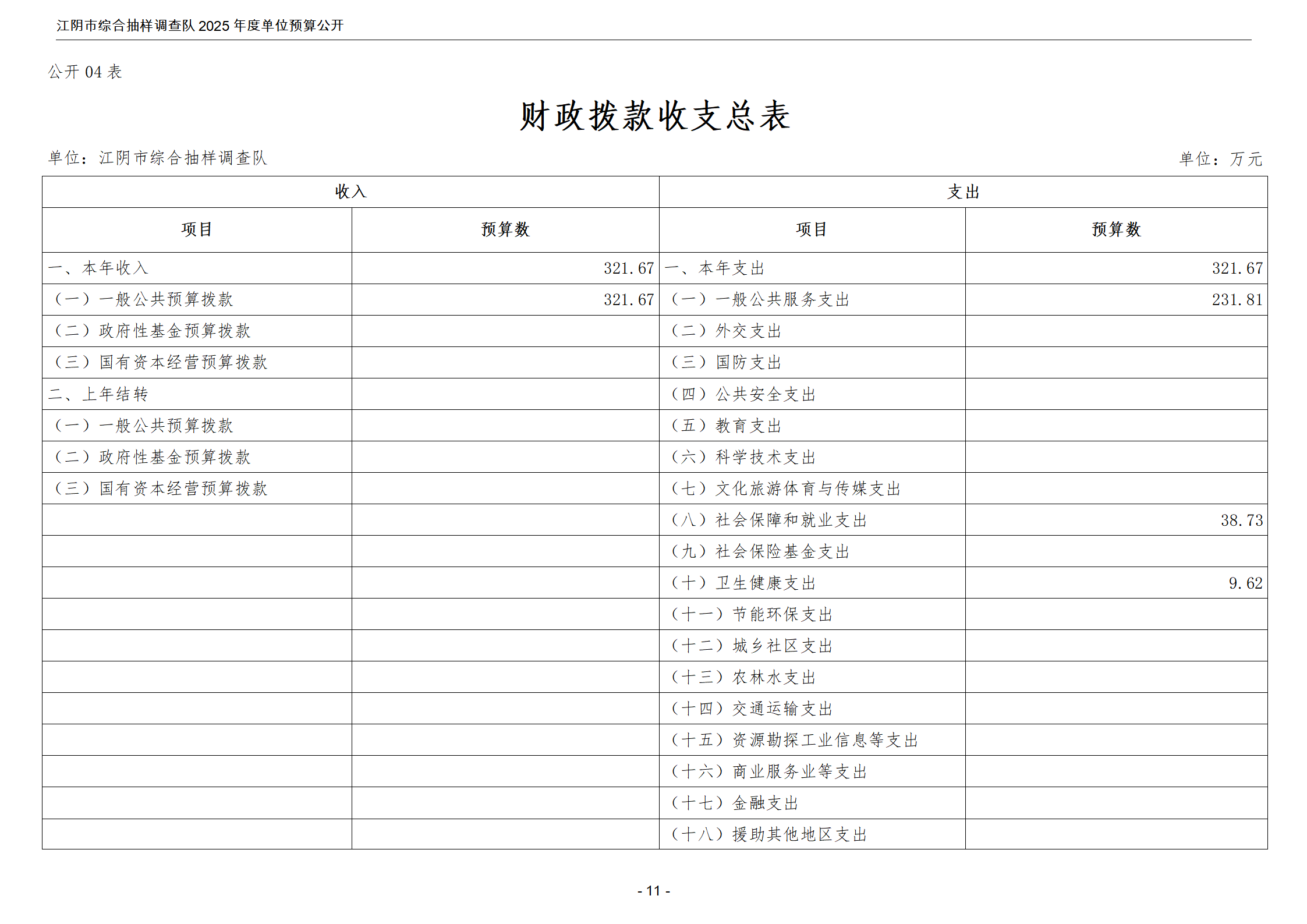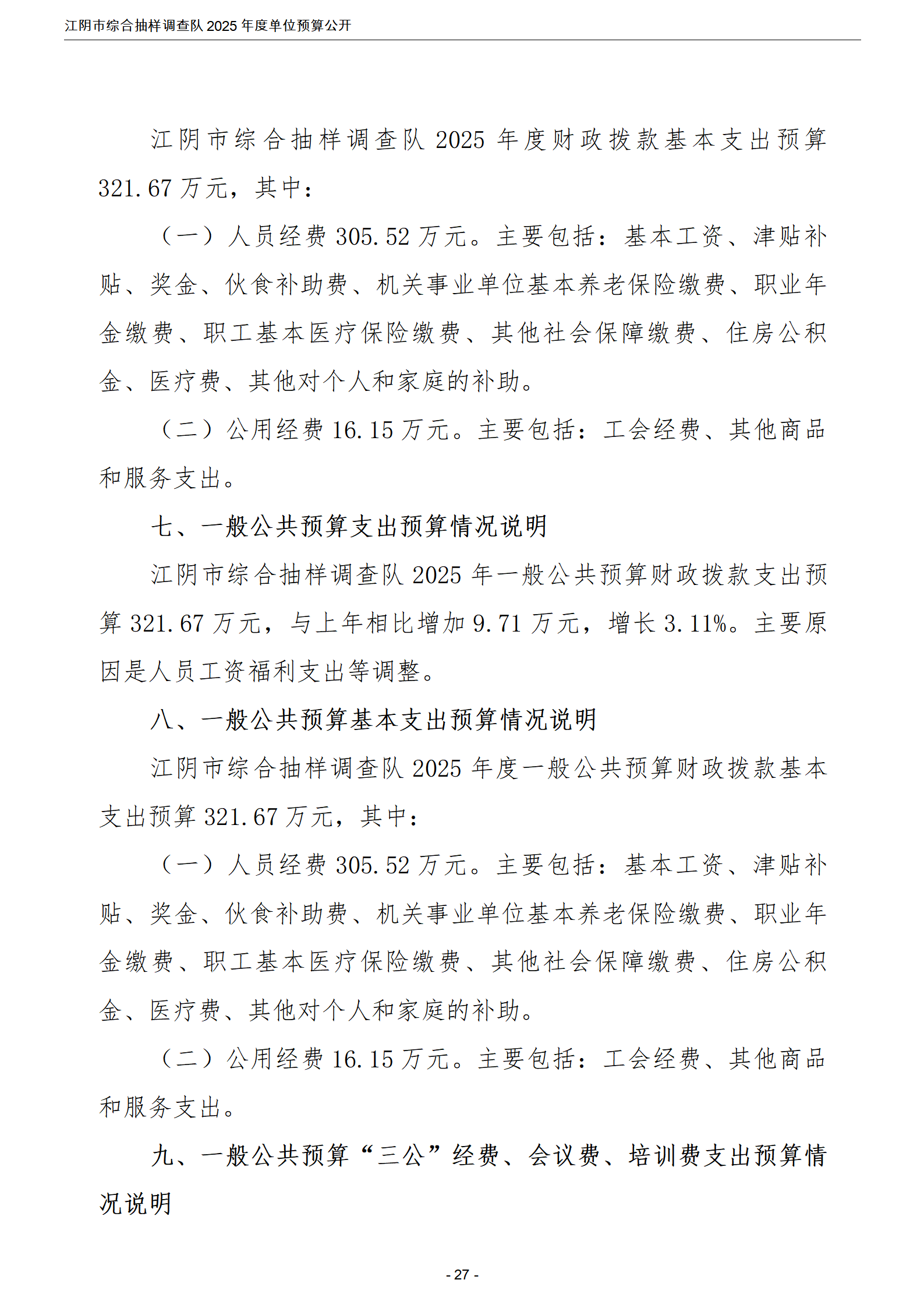 江陰市綜合抽樣調查隊2025年度單位預算公開 |