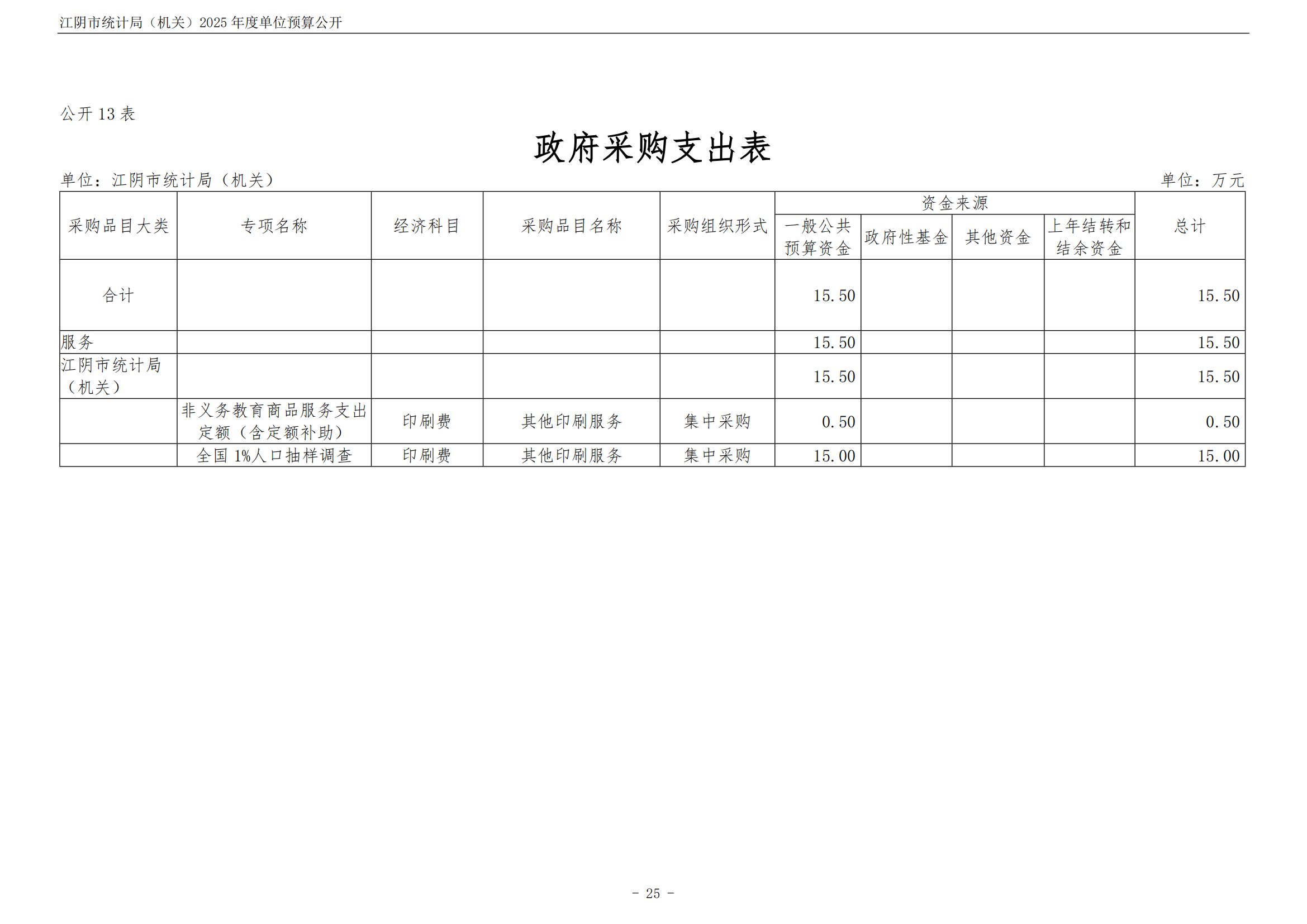 江陰市統計局(機關)2025年度單位預算公開 |