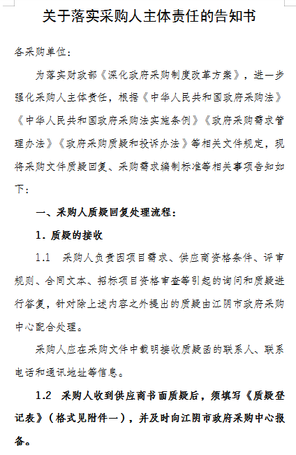 在壓實采購人主體責任方面,中心依據相關法規,制定了《關于落實采購人主體責任的告知書》,明確采購人與代理機構的權責劃分。該文件要求采購人深度參與需求編制、評審和質疑處理等關鍵環節,并作為質疑處理的第一責任人,直接負責對因項目需求、資格條件、評審規則等引起的詢問和質疑,進行規范、高效地答復與修正。此舉顯著增強了采購主體的責任意識和履職能力,為政府采購活動的規范有序開展奠定了堅實基礎。
